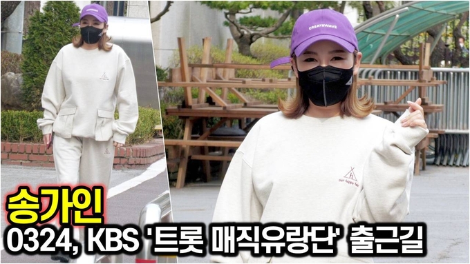 [뉴스인스타 양철수기자] 3월 24일(수) 오후, 서울시 영등포구 여의도 KBS 공개홀에서 진행되는 KBS ‘트롯 매직유랑단’ 녹화를 위해 송가인이 방송국에 도착하고 있다.