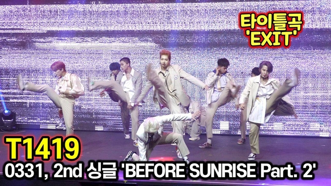 [뉴스인스타 양철수기자] 3월 31일(수) 오후 서울시 마포구 서교동 신한카드 판스퀘어에서 그룹 T1419의 두번째 싱글 앨범 'BEFORE SUNRISE Part. 2' 쇼케이스가 열려 멤버 시안, 레오, 카이리, 건우, 제로, 온, 키오, 케빈, 노아가 타이틀곡 'EXIT' 무대를 선보이고 있다.
