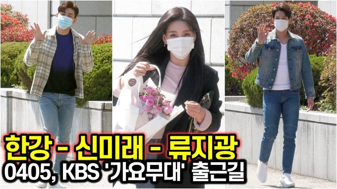 [뉴스인스타 양철수기자] 4월 5일(월) 오후, 서울시 영등포구 여의도 KBS 별관에서 진행되는 KBS 1TV ‘가요무대' 녹화를 위해 트롯 전국체전 신미래, 한강 그리고 미스터트롯 레인보우 류지광이 방송국에 도착하고 있다.