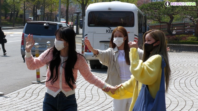 [뉴스인스타 양철수기자] 4월 7일 오후 서울시 영등포구 여의도 KBS본관에서 진행되는 KBS 쿨FM '정은지의 가요광장' 생방송에 출연하기 위해 우주소녀(WJSN) 엑시-설아-다영이 방송국에 도착하고 있다.
