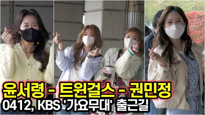 [뉴스인스타 양철수기자] 4월 12일(월) 오후, 서울시 영등포구 여의도 KBS 별관에서 진행되는 KBS 1TV ‘가요무대' 녹화를 위해 '트롯 전국체전' 윤서령, '미스트롯2' 트윈걸스, 권민정이 방송국에 도착하고 있다.