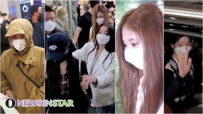 [뉴스인스타 양철수기자] 4월 21일(수) 오후 서울시 강서구 방화동 김포공항 국내선 터미널에서 트와이스(TWICE) 채영, 미나, 지효, 쯔위, 다현이 제주도에서 일정을 마치고 도착하고 있다.