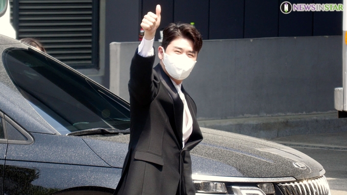 [뉴스인스타 양철수기자] 4월 29일 서울의 한 공연장에서 진행되는 MGTV 개국을 축하하는 '개국 축하쇼'에 미스터트롯 영탁이 오정연 아나운서와 MC를 맡아 출근하고 있다.