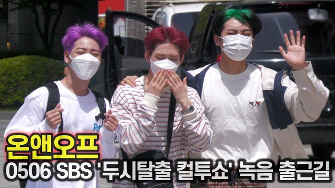 [뉴스인스타 양철수기자] 5월 6일(목) 오후, 서울시 양천구 목동 SBS에서 진행되는 SBS 파워FM ‘두시탈출 컬투쇼’ 녹음을 위해 그룹 온앤오프(ONF) 이션, 효진, MK가 방송국에 입장하고 있다.