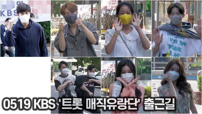 [뉴스인스타 양철수기자] 5월 19일(수) 오전, 서울시 영등포구 여의도 KBS 공개홀에서 진행되는 KBS ‘트롯 매직유랑단’ 녹화를 위해 트롯 전국체전 진해성, 재하, 오유진, 신승태, 상호&상민, 신미래, 설하윤이 방송국에 도착하고 있다.