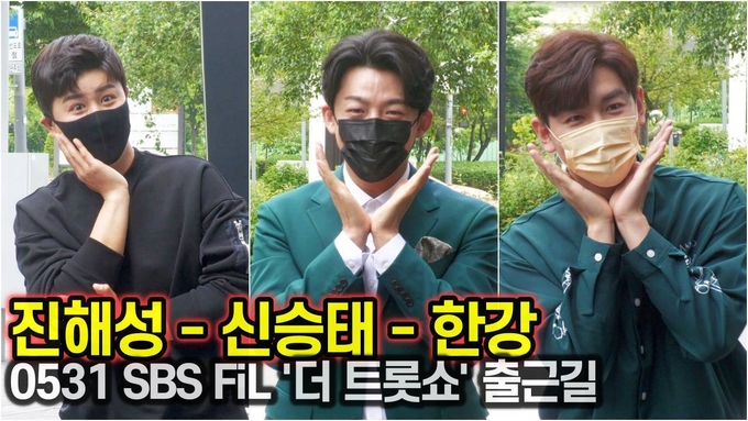 [뉴스인스타 양철수기자] 5월 31일(월) 오전, 서울시 마포구 상암동 SBS프리즘타워에서 진행되는 SBS FiL(MTV) 'The 트롯Show' 녹화를 위해 트롯 전국체전 진해성, 신승태, 한강이 방송국에 도착하고 있다.
