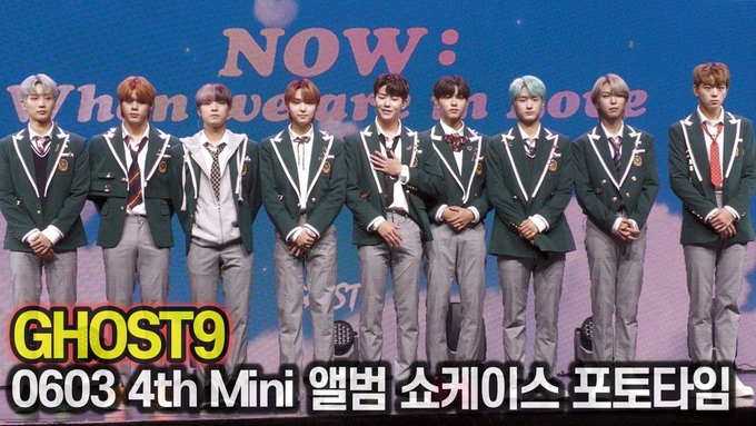 [뉴스인스타 양철수기자]. 6월 3일(목) 오후 서울시 광진구 광장동 예스24 라이브홀에서 진행된 GHOST9(황동준, 손준형, 이신, 최준성, 이강성, 프린스, 이우진, 이태승, 이진우) 네번째 미니 앨범 'NOW : When we are in Love' 발매기념 쇼케이스가 열려 GHOST9 가 포토타임을 갖고 있다.