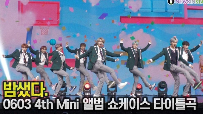 [뉴스인스타 양철수기자]. 6월 3일(목) 오후 서울시 광진구 광장동 예스24 라이브홀에서 진행된 GHOST9(황동준, 손준형, 이신, 최준성, 이강성, 프린스, 이우진, 이태승, 이진우) 네번째 미니 앨범 'NOW : When we are in Love' 발매기념 쇼케이스가 열려 GHOST9이 타이틀곡 '밤샜다' 무대를 선보이고 있다.