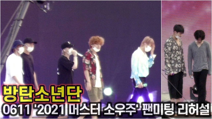 [뉴스인스타 양철수기자] 6월 11일(금) 오후, 서울시 송파구 잠실보조경기장에서 6월 13일~14일 진행되는 그룹 방탄소년단(BTS) RM, 진, 슈가, 제이홉, 지민, 뷔, 정국이 데뷔 8주년 기념 팬미팅 'BTS 2021 머스터 소우주' 리허설을 진행하고 있다.