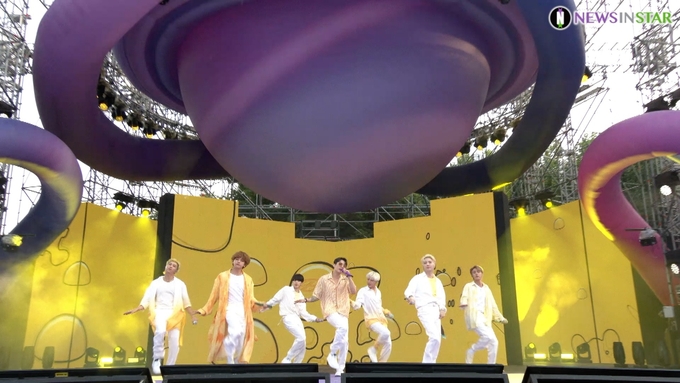 [뉴스인스타 양철수기자] 6월 13일(일)~14일(월) 오후, 서울시 송파구 잠실보조경기장에서 그룹 방탄소년단(BTS) RM, 진, 슈가, 제이홉, 지민, 뷔, 정국이 데뷔 8주년 기념 팬미팅 'BTS 2021 머스터 소우주' 공연을 펼치고 있다. (영상제공 : 빅히트 뮤직)