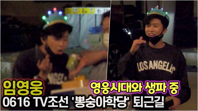 [뉴스인스타 양철수기자] 6월 16일(수) 새벽, 경기도 안산시 단원구 대부도에서 진행된 TV조선 ‘뽕숭아학당 - 인생학교’ 녹화 현장를 마치고 미스터트롯 진 임영웅이 퇴근길에 영웅시대 팬들과 생일 파티를 하고 있다