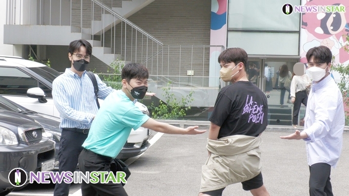 [뉴스인스타 양철수기자] 6월 23일(수) 오후, 서울시 강남구 논현동 한 스튜디오에서 진행되는 네이버 NOW ‘점심어택’ 출연을 위해 JTBC ‘팬텀싱어’ 라포엠(LA POEM) 박기훈, 유채훈, 정민성, 최성훈이 스튜디오에 도착하고 있다.