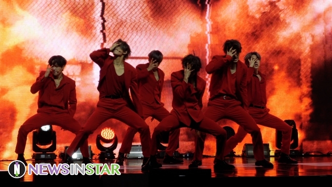 [뉴스인스타 양철수기자] 6월 30일(수) 오후, 서울 광진구 광장동 예스24라이브홀에서 열린 저스트비(JUST B) 데뷔 미니앨범 ‘JUST BURN’ 쇼케이스에서 JUST B 임지민, 이건우, 배인, JM, 전도염, 김상우가 타이틀곡 '데미지' 무대를 선보이고 있다.