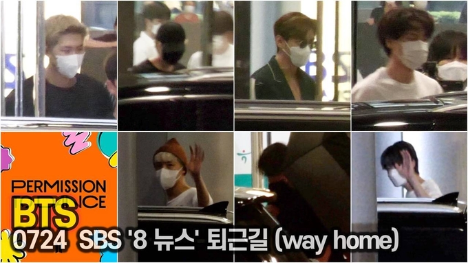 [뉴스인스타 양철수기자] 7월 24일(토) 오후 서울시 양천구 목동 SBS에서 진행되는 SBS ‘8 뉴스’ 인터뷰 녹화를 마치고 방탄소년단(BTS) RM, 진, 슈가, 제이홉, 지민, 뷔, 정국이 방송국을 떠나고 있다.