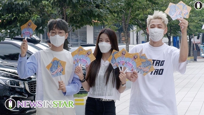 [뉴스인스타 양철수기자] 7월 28일(수) 오후, 서울시 양천구 목동 SBS에서 진행되는 SBS 러브FM ‘나르샤의 아브라카다브라’ 출연을 위해 아웃렛(OUTLET) 영기, 안성훈, 박성연이 방송국이 도착해 포즈를 취하고 있다.