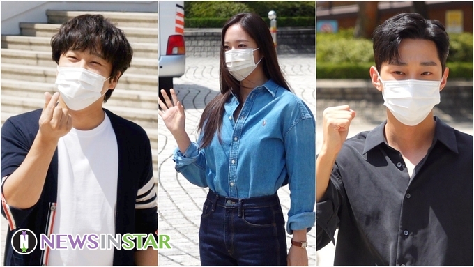 [뉴스인스타 양철수기자] 8월 9일(월) 오전, 서울시 영등포구 여의도동 KBS 본관에서 진행된 KBS CoolFM '정은지의 가요광장’에 KBS 2TV 새 월화드라마 ‘경찰수업’ 홍보를 위해 차태현, 정수정, 진영이 방송국에 도착해 포즈를 취하고 있다.