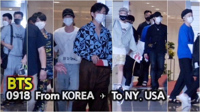 [뉴스인스타 양철수기자] 9월 18일(토) 오후 인천시 중구 운서동 인천국제공항 제2터미널에 방탄소년단(BTS) RM, 진, 제이홉, 지민, 뷔, 정국이 9월 19일부터 미국 뉴욕에서 열리는 제76차 유엔총회에 참석하기 위해 미국으로 출국하고 있다.