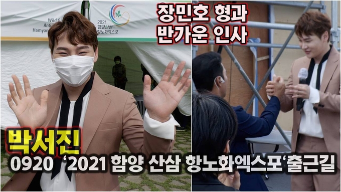 [뉴스인스타 양철수기자] 9월 20일(월) 오전, 경상남도 함양군에서 진행되는 ‘2021함양산삼항노화엑스포’에서 엑스포 성공기원을 위한 스페셜 콘서트가 열려 트롯가수 박서진이 무대에 서기 위해 출근하고 있다.