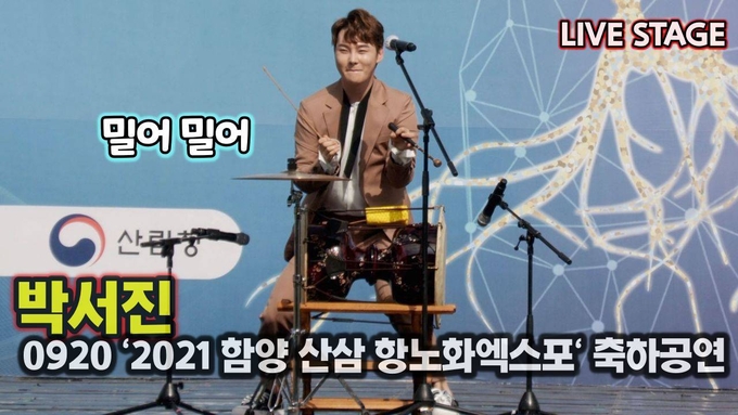 [뉴스인스타 양철수기자] 9월 20일(월) 오전, 경상남도 함양군에서 진행되는 ‘2021함양산삼항노화엑스포’에서 엑스포 성공기원을 위한 스페셜 콘서트가 열려 트롯가수 박서진이 환상의 장구 공연 무대를 선보이고 있다.