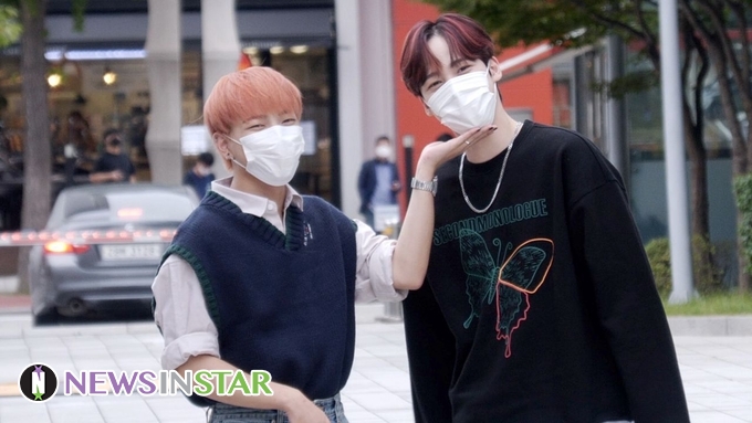 [뉴스인스타 양철수기자] 9월 27일(월) 오후 서울시 양천구 목동 SBS에서 진행되는 SBS 파워FM ‘박소현의 러브게임’ 녹음을 위해 ATEEZ(에이티즈) 홍중, 윤호가 방송국에 도착해 포즈를 취하고 있다.