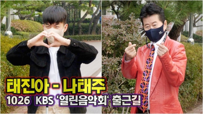 [뉴스인스타 양철수기자] 10월 26일(화) 오후, 서울시 영등포구 여의도 KBS홀에서 진행되는 KBS '열린음악회' 녹화를 위해 미스터트롯 나태주, 태진아가 방송국에 도착해 포즈를 취하고 있다.