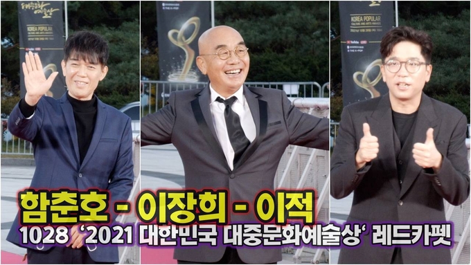 [뉴스인스타 양철수기자] 10월 28일(목) 오후 서울 중구 국립극장 해오름극장에서 '2021 대한민국 대중문화예술상' 시상식이 열렸다. 이날 시상식에 앞서 진행된 레드카펫에서 가수 이장희, 함춘호, 이적이 참석해 포토타임을 갖고 있다.