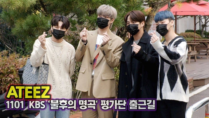 [뉴스인스타 양철수기자] 11월 1일(월) 오후, 서울시 영등포구 여의도 KBS 공개홀에서 진행되는 KBS ‘불후의 명곡’ 녹화를 위해 그룹 ATEEZ의 최산, 송민기, 정우영, 최종호가 방송국에 도착해 포즈를 취하고 있다.