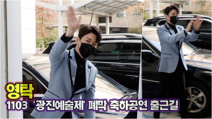 [뉴스인스타 양철수기자] 11월 3일(수) 오후, 서울시 광진구 나루아트센터에서 진행되는 제1회 광진예술제 폐막 축하공연을 하기 위해 미스터트롯 영탁이 출근하며 팬들에게 인사를 하고 있다.