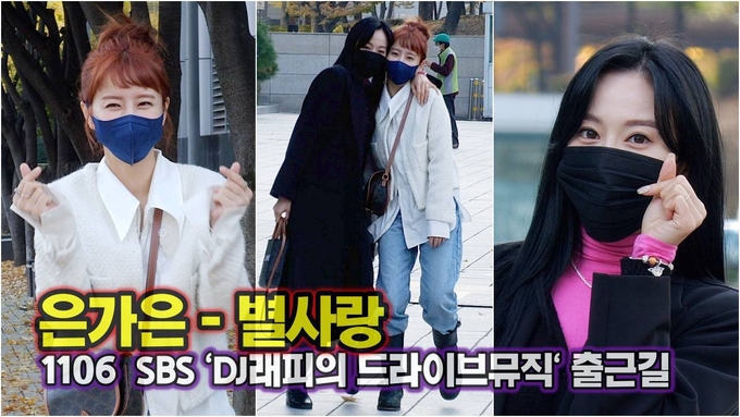 [뉴스인스타 양철수기자] 11월 6일(토) 오전, 서울시 양천구 목동 SBS에서 생방송으로 진행되는 SBS 파워FM 'DJ 래피의 드라이브 뮤직' 생방송 출연을 위해 '내일은 미스트롯2' 은가은, 별사랑이 방송국에 도착해 포즈를 취하고 있다.