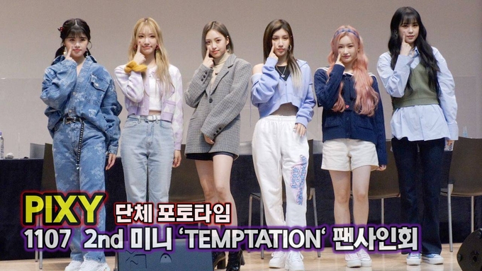 [뉴스인스타 양철수기자] 11월 7일(일) 오후, 서울시 양천구 코바코홀에서 진행된 그룹 픽시(PIXY : 엘라, 샛별, 수아, 디아, 로라, 다정)의 두 번째 미니앨범 ‘TEMPTATION’ 발매 기념 팬사인회에 참석해 단체 포토타임을 갖고 있다.