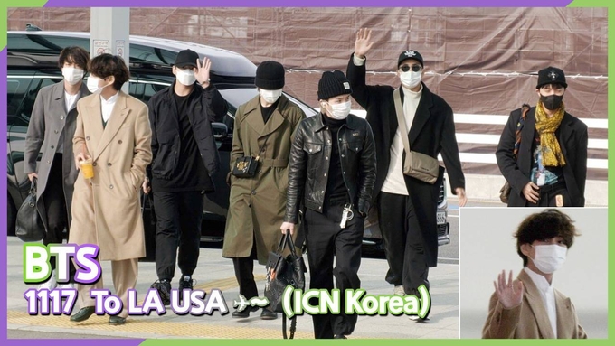 [뉴스인스타 양철수기자]  11월 17일(수) 오후 인천시 중구 운서동 인천국제공항 제2터미널에 방탄소년단(BTS) RM, 진, 제이홉, 지민, 뷔, 정국, 슈가가 11월 27일 미국 'PERMISSION TO DANCE ON STAGE - LA' 공연을 시작으로 미국 행사를 위해 출국하고 있다.