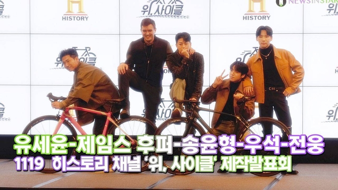 [뉴스인스타 양철수기자] 11월 19일(금) 오후, 서울시 종로구 JW메리어트 동대문 스퀘어에서 진행되는 에이앤이 코리아 히스토리 오리지널 ‘위, 사이클’ 제작발표회가 열려 유세윤, 제임스 후퍼, 아이콘 송윤형, 펜타곤 우석, 에이비식스 전웅이 포토타임을 갖고 있다.