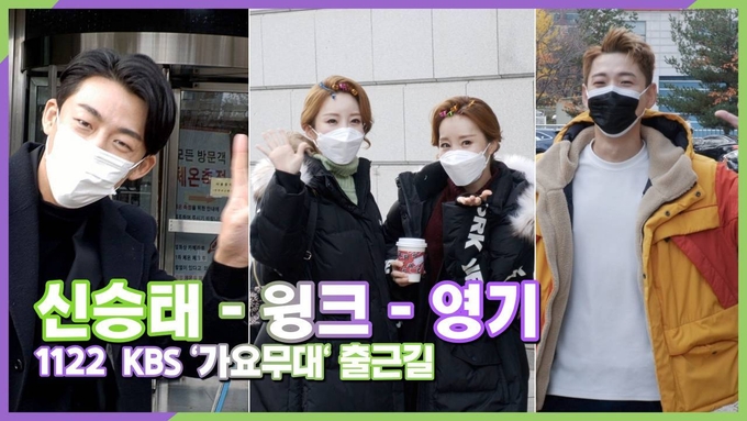 [뉴스인스타 양철수기자] 11월 22일(월) 오후, 서울시 영등포구 여의도 KBS 별관에서 진행되는 KBS 1TV ‘가요무대' 녹화를 위해 신승태, 윙크, 영기가 방송국에 도착해 포즈를 취하고 있다.