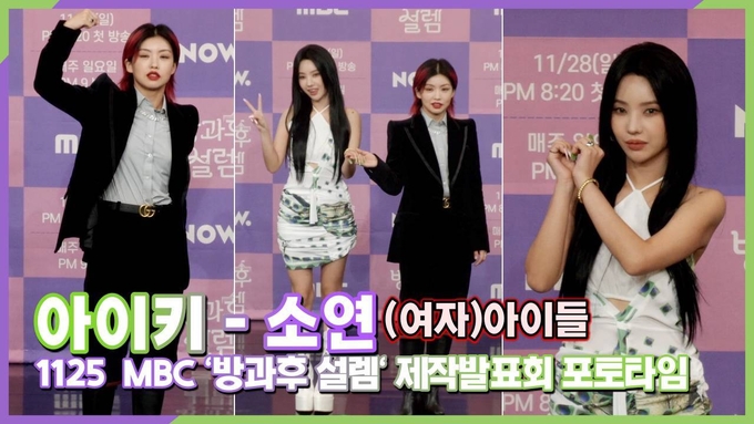 [뉴스인스타 양철수기자] 11월 25일(목) 오후, 서울시 마포구 상암동 MBC에서 진행된 MBC 글로벌 걸그룹 오디션 '방과후 설렘' 제작발표회가 열려 담임선생님 아이키, 소연(여자)아이들 이 포토타임을 갖고 있다.
