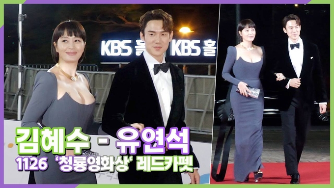 [뉴스인스타 양철수기자] 11월 26일(금) 오후, 서울시 영등포구 여의도 KBS홀에서 진행되는 제42회 청룡영화상 시상식 MC 김혜수, 유연석이 레드카펫을 지나 포토월에서 포즈를 취하고 있다.
