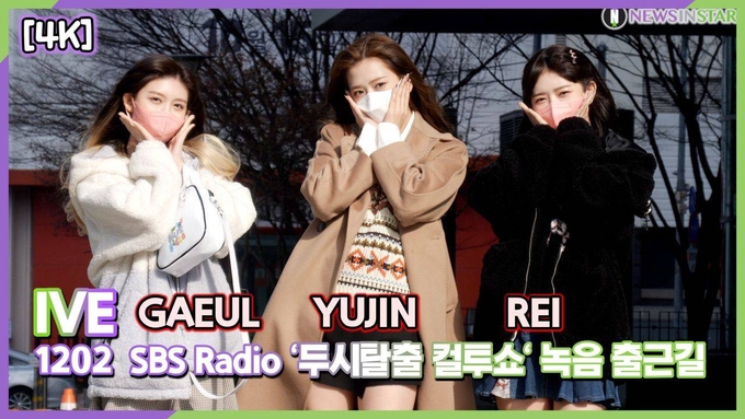 [뉴스인스타 양철수기자] 12월 2일(목) 오전, 서울시 양천구 목동 SBS에서 진행되는 SBS 파워FM ‘두시탈출 컬투쇼’ 일요일 방송 녹음을 위해 그룹 아이브(IVE) 안유진, 가을, 레이가 방송국에 도착해 포즈를 취하고 있다.