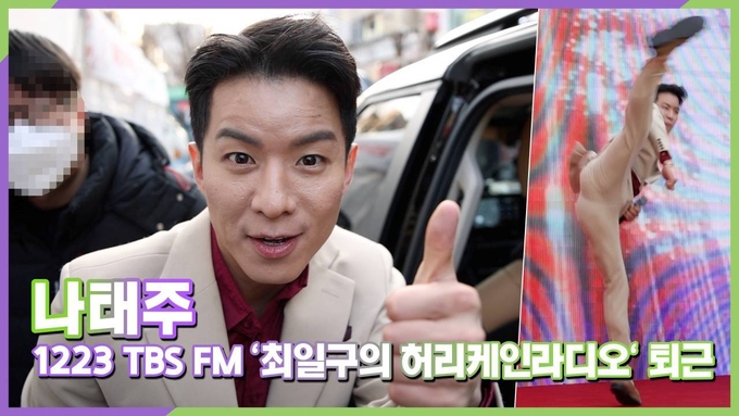 [뉴스인스타 양철수기자] 12월 23일(목) 오후, 서울시 마포구 서교동 홍대 상상마당 앞 오픈 스튜디오에서 TBS '최일구의 허리케인 라디오' 크리스마스 특집 '손님온다, 어서옵SHOW' 출연을 마치고 태권트롯 나태주가 퇴근하고 있다.