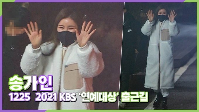 [뉴스인스타 양철수기자] 12월 25일(토) 오후, 서울시 영등포구 여의도 KBS에서 진행되는 2021 KBS '연예대상' 시상식에 참석하기 위해 송가인이 방송국에 도착해 팬들에게 인사를 하고 있다.