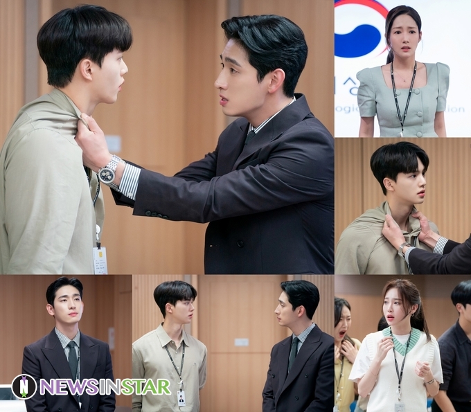 이 이미지의 배경은 브리핑실. 문민일보 기상전문 기자 유진 등 언론을 상대로 브리핑하던 기준이 시우의 멱살을 움켜쥐며 분위기는 한순간 싸늘해진다. 서로를 노려보고 있는 눈빛에서도 알 수 있듯이 불쾌지수는 하늘을 찌른다. 이를 본 하경과 유진의 얼굴에는 놀람과 당혹감이 서려 있다. 공적인 자리가 한순간에 잔혹한 전쟁의 공간으로 탈바꿈한 이유에 궁금증이 쏠린다.