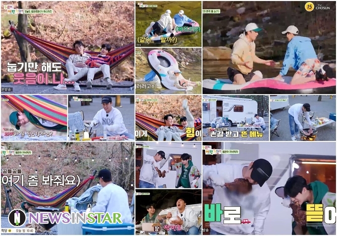 먼저 정동원은 장민호 뒤를 졸졸 쫓아다니며 물놀이를 하자 졸랐고, 장민호는 한숨을 내쉬며 “조금만 쉬었다 하자”고 달랬다. 이에 두 사람은 신발을 벗고 나란히 해먹에 누웠고 물소리와 바람 내음을 벗 삼아 힐링을 즐겼다. 하지만 정동원은 “밤 되면 강원도가 춥다”며 “지금 아니면 못 들어간다. 밤에 누우면 되지 왜 지금 누워있냐”고 타박했고, 결국 장민호는 정동원의 성화에 옷을 갈아입고 계곡으로 향해 웃음을 자아냈다.
