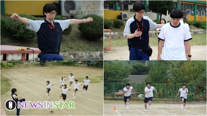 공개된 사진 속 유봉두는 6명 학생들과 함께 운동장에서 체육 시간을 갖고 있다. 강한 정신력은 지치지 않는 체력에서 나온다는 것. 각을 잡고 호루라기를 불고 있는 유봉두의 ‘킹 받는’ 모습과 이와 대비되어 ‘체조 지옥’에서 허우적거리는 학생들의 모습이 폭소를 유발한다.