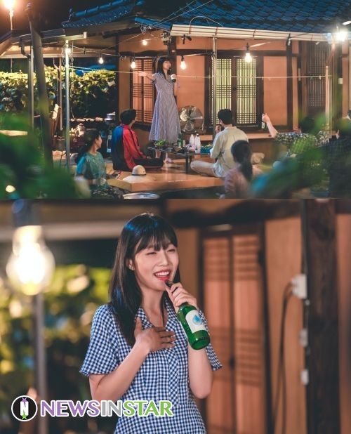 카카오TV 오리지널 ‘어쩌다 전원일기’(연출 권석장, 극본 백은경, 기획-제작 카카오엔터테인먼트)가 오늘(12일) 4회 공개에 앞서 선보인 스틸컷에는 희동리의 인간 민원센터, 순경 ‘안자영’(박수영 분)이 마을 잔치의 중심에서 노래 솜씨를 뽐내고 있는 순간을 포착하고 있다. 숟가락을 턱 꽂은 소주병을 손에 쥐고 열창하는 걸 보니 한두 번 해본 솜씨가 아닌 듯하다.