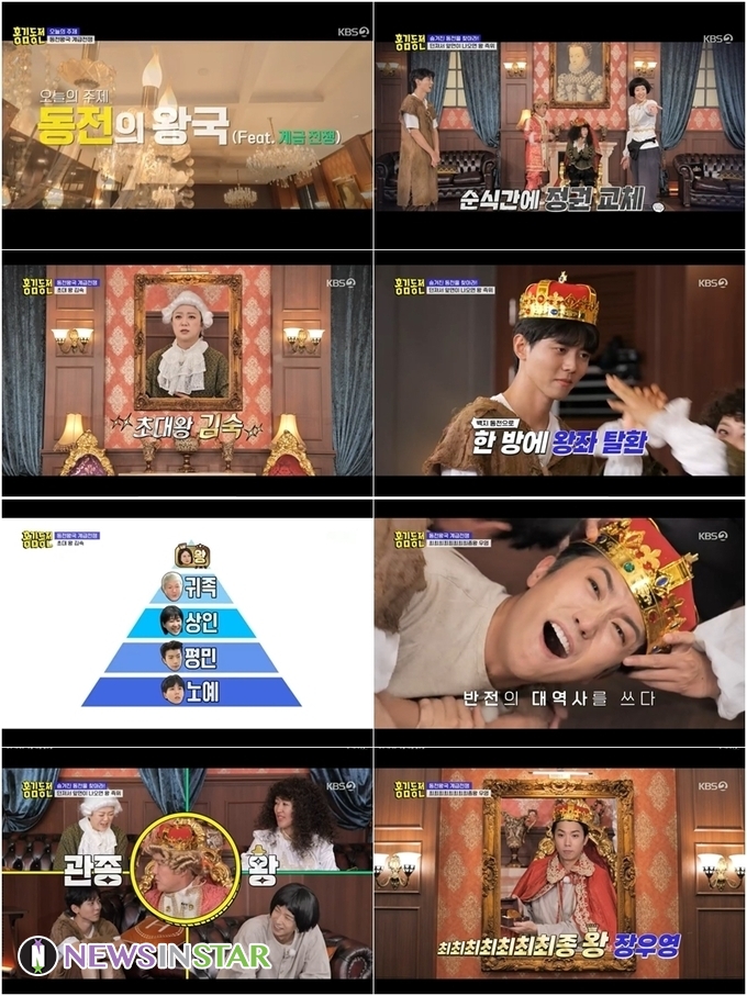 일요일로 자리를 옮긴 KBS 예능 ‘홍김동전’이 중세 ‘동전의 왕국(feat계급전쟁)’에서 연이은 배신과 4번에 이른 반전이 정점을 찍으며 최종왕에 우영이 등극해 안방극장에 킹잼을 선사했다.