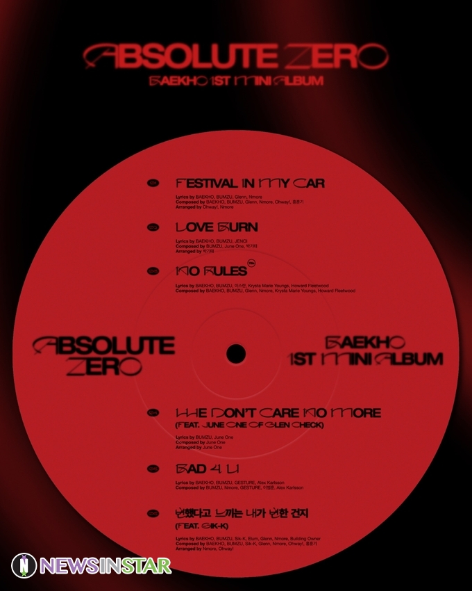 첫 번째 미니 앨범 ‘Absolute Zero’는 모든 분자의 에너지 흐름이 ‘0’(zero)가 되어 어떠한 저항도 없는 상태인 ‘절대영도’를 의미한다. 홀로서기에 나선 백호의 새 출발을 이야기하는 만큼 백호만의 온도를 남아낸 앨범이다.