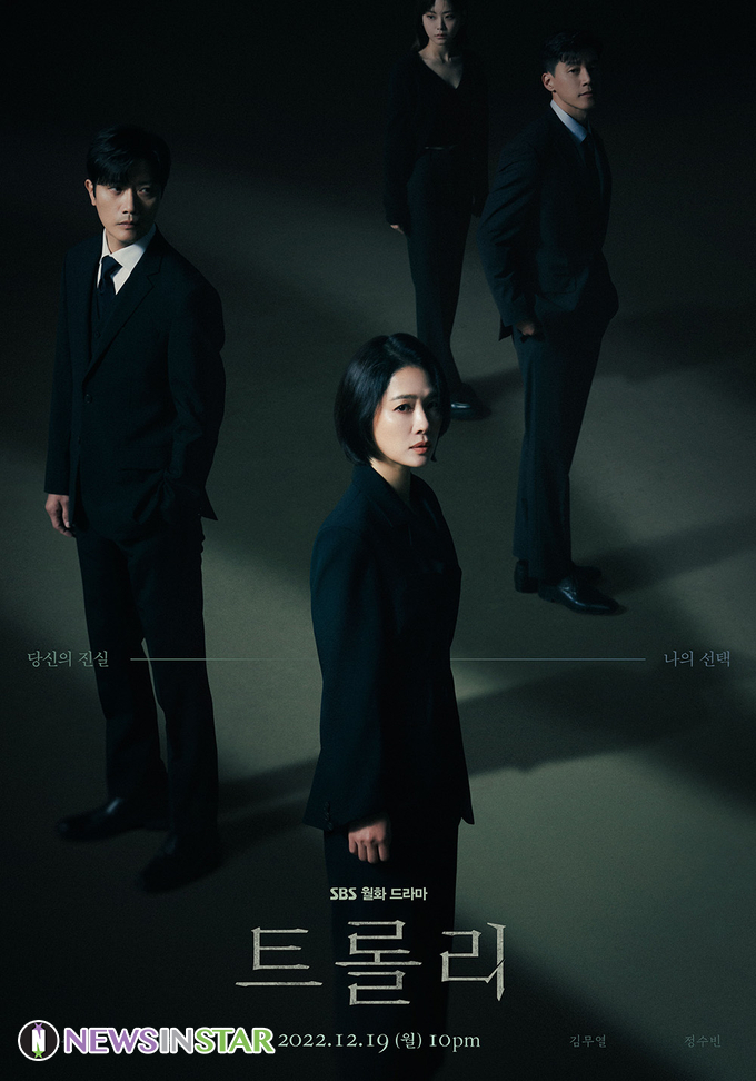 오는 19일(월) 첫 방송되는 SBS 새 월화드라마 ‘트롤리’(연출 김문교, 극본 류보리, 제작 스튜디오S) 측은 6일 김현주, 박희순, 김무열, 정수빈의 단체 포스터 2종을 공개했다. 어둠을 뚫고 나오는 비밀스러운 존재감이 궁금증을 자아낸다.