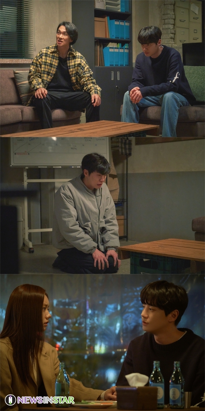 그런 가운데 공개된 사진 속, 정적이 감도는 일당백 사무실 풍경이 숨 막히는 긴장감을 자아낸다. 무릎을 꿇고 눈물을 흘리는 서해안. 이를 바라보는 날선 김태희, 빈센트의 모습은 끈끈했던 이들에게 심상치 않은 균열이 생겼음을 짐작케 한다. 혼란에 빠진 김태희를 위로하는 백동주의 모습도 포착됐다. 김태희는 진실에 다가갈수록 괴로움도 깊어지고 있다. 과연 백동주의 위로는 혼란스러운 그의 마음을 단단히 잡을 수 있을지, 예상치 못한 시련 속에서 진실을 밝힐 수 있을지 궁금해진다.