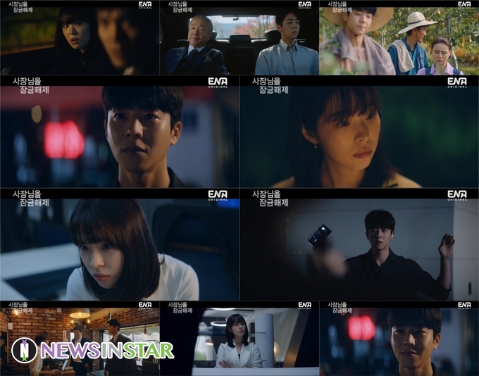 지난 28일 방송된 ENA 수목드라마 ‘사장님을 잠금해제’(연출 이철하, 극본 김형민, 기획 KT스튜디오지니, 제작 하이지음스튜디오·스튜디오N, 원작 네이버웹툰<사장님을 잠금해제>(작가 박성현)) 7회에서 박인성(채종협 분), 정세연(서은수 분), 김선주(박성웅 분)의 공조가 결정적 터닝포인트를 맞았다. 거듭되는 위기에 진실 추적을 잠시 멈췄던 박인성. 깊은 고뇌의 시간 끝에 성장해 돌아온 그는 다시 결의를 다졌다. 그리고 세 사람은 반전의 승부수를 던졌다. 핵심 증거를 확보하기 위해 김선주가 스스로 미끼가 된 것. 적의 손에 넘어간 스마트폰, 그리고 이들의 반격은 성공할 수 있을지 궁금증을 고조시킨다.