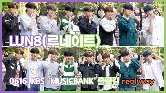[뉴스인스타 양철수기자] 6월 16일(금) 서울시 영등포구 여의도 KBS 신관 공개홀에서 진행되는 KBS 'MUSICBANK' 리허설에 참석하기 위해 그룹 LUN8(루네이트) 진수, 카엘, 타쿠마, 준우, 도현, 이안, 지은호, 은섭이 방송국으로 들어서고 있다.