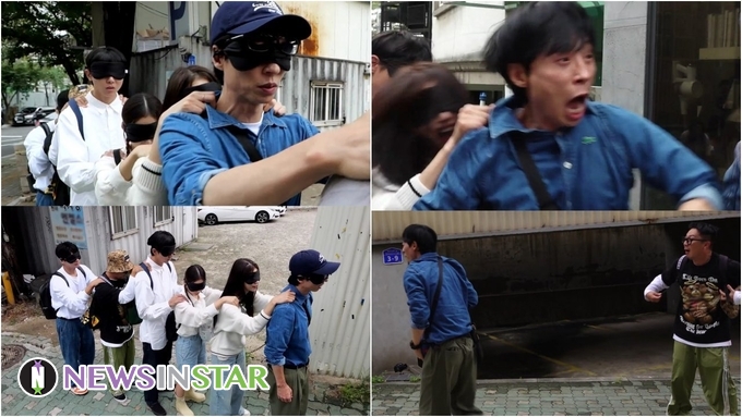 공개된 사진 속 멤버들은 안대를 쓴 채 기차놀이를 하듯 앞사람 어깨에 손을 얹고 이동 중이다. 조심조심 발걸음을 떼는 멤버들은 주변에서 들리는 소리에 귀를 쫑긋 기울이고 있어 호기심을 자극한다. 특히 유재석 앞에는 멤버들이 아닌 정체 모를 수상한 인물이 있어 궁금증을 끌어올린다.