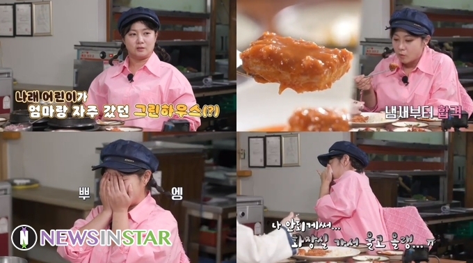 공한 개그맨 박나래가 경양식 돈가스 한입에 눈물을 왈칵 쏟아낸다.